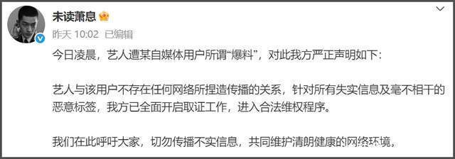 目前屈楚萧方面并没有继续针对前女友的反驳做出回应,也没有解释为什么会认识司晓迪,司晓迪的爆料是否属实等问题。